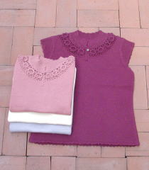 ちいさな袖と衿ぐりのモチーフ編みが女の子っぽくて可愛いベスト