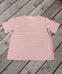 ↑アンの部屋の定番、やわらかい細ボーター地のポケット付きTシャツ。すこしAラインになっているのが