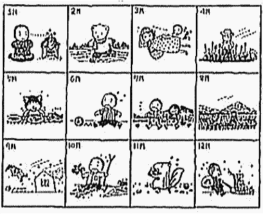 | このカレンダー作りも84年から続いているから、もう18年目を迎えます。その間に、「えと」も2回り半しているハズなのに、登場人(動)物たちはちっとも変わらず遊んでばかり・・・。これは作者がちっともも進歩していないのか、それとも囲りがめまぐるしぎるのか? 来年こそ、こんなおだやかな年となりますよーに・・・。 M.N |