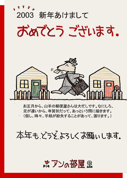 「アンの部屋」の鎌倉雪ノ下店・弘前店は元旦から、石巻店は2日から、他店は3日から営業します。どうぞ新春の「アンの部屋」に、遊びにいらしてくださいね。